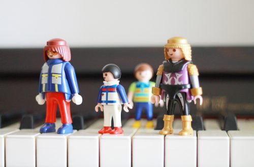 Colocamos un juguete (pequeño) sobre cada tecla del piano. Por cada punto de práctica o por cada repetición obtendrá uno. Al final de la jornada de práctica con los juguetes conseguidos hacemos una historia y un ratito a jugar con papá y/o mamá.